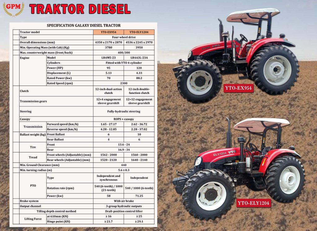 Traktor YTO 954 hadir sebagai salah satu pilihan yang bisa dipertimbangkan untuk perkebunan sawit, karena mengutamakan efisiensi, keandalan, dan produktivitas. Dengan tenaga sekitar 95 HP, mampu menarik trailer angkut TBS dengan beban berat sekitar 4-5 ton dalam durasi panjang.